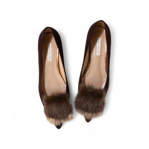パンプス コンビファー付きフラットパンプス