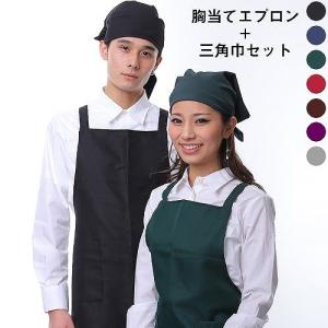 胸当てエプロン 三角巾 2点セット ユニセックス エプロン 選べる 7カラー おしゃれ 無地 黒 赤 ネ イビー グリーン ブラウン isis-set-m3 爆買