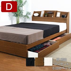 【日本製 仕切り付き 引出し付き ベッド フレーム + 日本製 低反発 ポケットコイル マットレス ダブル】純国産 コンセント 照明 北欧 代引不可