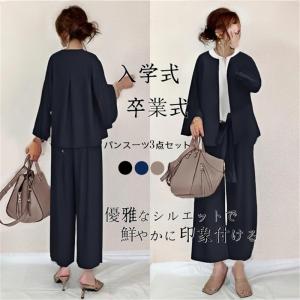 スーツ レディース セレモニースーツ 3点セット 入学式 服装 服 入園式 ママ セットアップ 母 卒業式 九分丈 卒園式 パンツスーツ 50代 40代 30代 20代