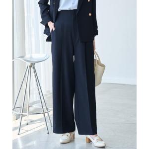 スラックス パンツ 「接触冷感・洗濯可能」リネン混ストレッチワイドパンツ レディース
