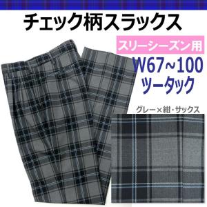 制服スクールスラックスIS2102グレー紺サックスチェックW67~100ツータック