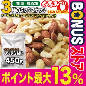くるみゼロ ミックスナッツ セール 無塩 無添加 3種 450g ポイント利用 おつまみ 訳あり くるみ無し マカダミア アーモンド カシュー メール便
