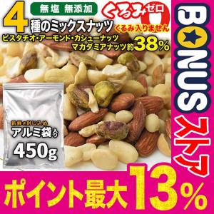 爆買 くるみゼロ ミックスナッツ セール 無塩 無添加 4種 450g ポイント利用 おつまみ 訳あり くるみ無し マカダミア38% アーモンド カシュー メール便
