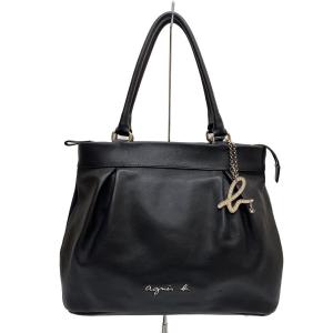 agnes b VOYAGE◆トートバッグ/牛革/BLK/WR04/スレ、傷有/ハンドルコバ割れ