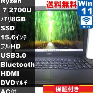 Windows11 富士通Lifebook WAB/D1 Ryzen3 2300U メモリ8GB ssd256GB DVDマルチ Office2021設定済み 中古ノートパソコン ブラック