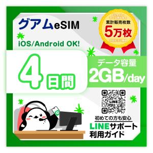 グアムeSIM:使用日数:4日間/データ容量:2GB(day)/簡単設定/有効期限90日/最短即日発行/パスポート番号不要/データ通信専用