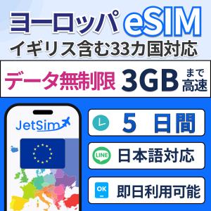 【ヨーロッパ eSIM】5日間 3GB 高速データ通信 4G/5G対応 即日発行可 フランス・イタリア・イギリス対応 テザリング可 簡単設定