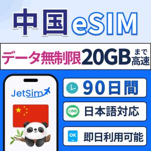 【中国 eSIM】90日間 20GB 高速データ通信 4G/5G対応 即日発行可 テザリング可 簡単設定