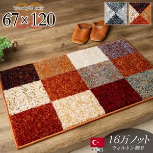玄関マット パッチワーク 柄 67×120 おしゃれ 北欧 風 室内 屋内 トルコ絨毯 ミッドセンチュリー