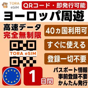 ヨーロッパ周遊 eSIM | 1日間 | 無制限 | 最短15分QRコード自動発行 即日発行 日本で設定OK | フランス,イギリス,イタリア,ドイツ,トルコ含む欧州40カ国