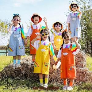 舞台服 子供服 小学生 セット 可愛い 演出服 ステージ 衣装 キッズダンス衣装 セット tシャツ 半袖 サロベット 子供服 セット 小学生 応援団 発表会 運動会 お揃