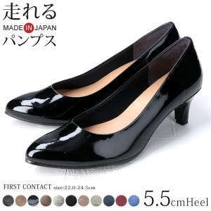 ファーストコンタクト パンプス 痛くない 歩きやすい 疲れない 柔らかい 5.5センチヒール アーモンドトゥ 靴 走れるパンプス 黒 日本製 39530 39531 39532 靴