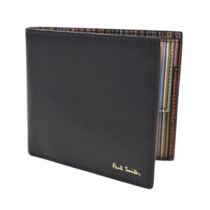 二つ折り 財布 メンズ 薄型 ポールスミス ブランド イタリア製 マルチストライプ フラップ 専用箱付 黒 ブラック 男性 紳士 本革