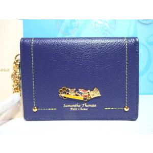 送料無料 サマンサタバサ 限定 くまのプーさん 本牛革 パスケース 紺 カード入れ 定期入れ 二つ折り チェーン付 新品 証明書付 ギフト包装無料 ディズニー