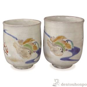 組湯呑 粉引おしどり ペア ( 名入れ有料 退職祝い 定年 湯呑み 湯のみ セット 湯飲み おすすめ セット 清水焼 京焼 結婚 出産 内祝い 引き出物 金婚式 )