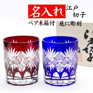 江戸切子グラス ペア 名入れ 退職祝い 定年退職祝い 還暦祝い 男性 女性 結婚祝い 金婚式 富士山 叙勲のお祝い 高級 有名 贈り物 田島硝子 魚子文様 赤青