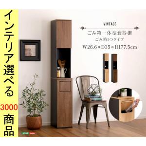 キャビネット 26.6×35×177.5cm 下半分ゴミ入れタイプ 2口コンセント付き ウォールナット・シャビーオーク色 YHVSKA1SS