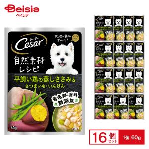 シーザー自然素材レシピ 平飼い鶏の蒸しささみ&さつまいも・いんげん 60g ×16 ペット
