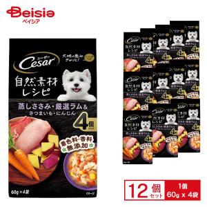 シーザー自然素材レシピ 蒸しささみ・厳選ラム&さつまいも・にんじん 60g×4袋 ×12 ペット