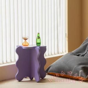 花びら形サイドテーブル 無垢材ウェーブ ミニコーヒーテーブル Welina 44.5×50.5cm ベッドサイドに シンプル可愛い 漫画風デザイン