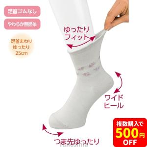 らくらくフィットクルーソックス(花柄) 愛情介護シリーズ 通年 抗菌防臭素材 履きやすい 履かせやすい 日本製 介護靴下 足首ゆったり 花柄スベリ止め付