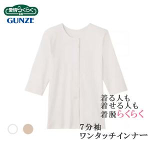 介護 肌着 7分袖ワンタッチインナー(前あき) 婦人用 グンゼ 綿100% HW4034