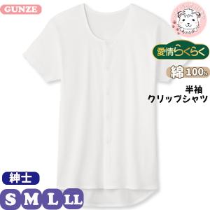 グンゼ 前開き 肌着 介護用 インナー メンズ 男性 綿100% 紳士 下着 半袖 ワンタッチシャツ 乾燥機対応 GUNZE HWC319 S-LL