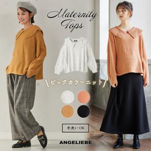 授乳服 マタニティ 服 トップス ビックカラー エアリー ニット 妊婦服 長袖 マタニティトップス 秋 冬 妊婦 トレンド 人気 襟 軽い ゆったり 無地