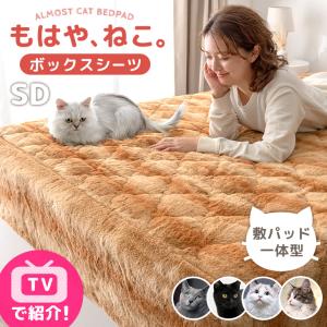 ボックスシーツ 敷きパッド 一体型 セミダブル 洗える 冬用 一体型ボックスシーツ 敷パッド 洗える あったか もはや、ねこ。 シーツ マットレスカバー 防ダニ