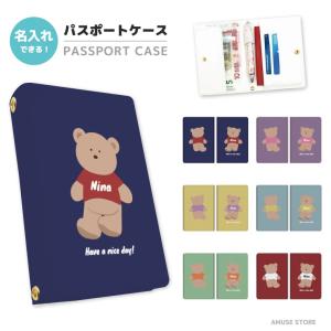 名入れ パスポートケース おしゃれ かわいい 2つ折り カード 紛失防止 ストラップホール付 高級感 軽量 テディベア イラスト