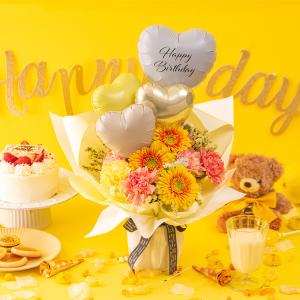 日比谷花壇公式 誕生日 花 花束 そのまま飾れる バルーンブーケ(イエロー・オレンジ)【沖縄届不可】 記念日 お見舞い 出産祝い 結婚記念日 退職祝い 送料無料