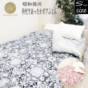 昭和西川 衿付きあったかボアふとん 掛布団 わた入り毛布 シングルサイズ nishikawa ブルージュ