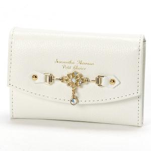 送料無料 サマンサタバサ 限定 ビジュー付 フラワーモチーフ プレート 牛革 パスケース マルチケース ミニ財布 定期入れ カード入れ 白 未使用 タグ付 包装無料