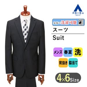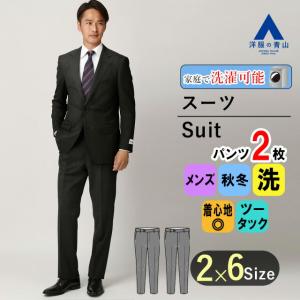 【洋服の青山】春夏 ブラック系 スタイリッシュスーツ ツーパンツ 男性 紳士服 パンツ2着 メンズ ビジネス ウォッシャブル ストレッチ 形状記憶 長袖 標準体