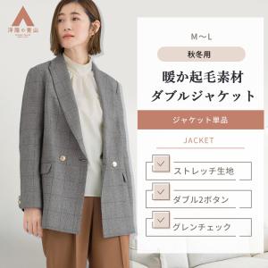 【洋服の青山】ダブルジャケット レディース 秋冬 ブラウン 茶色 グレンチェック 2ボタン ゴールドボタン ピークドラペル ジャケット ダブル ストレッチ