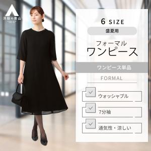 【洋服の青山】レディース フォーマルワンピース 春夏 ブラック ノーカラー レース ロングワンピース【サマーフォーマル】7分袖 襟元切替 薄手 涼しい 通気性
