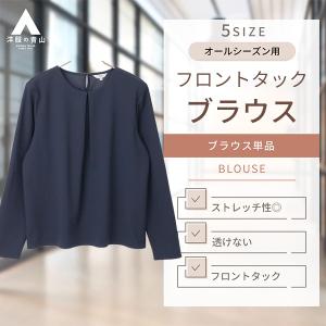 【洋服の青山】透けにくい ブラウス レディース 長袖 オールシーズン ネイビー 紺 無地 クルーネック 洗える 動きやすい シワになりにくい ウォッシャブル