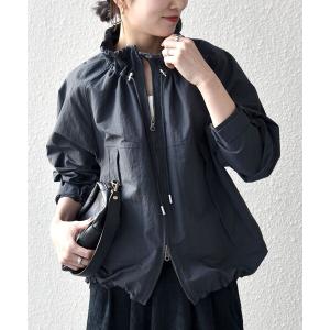 ブルゾン アウター SHIPS any:「洗濯機可能」ナイロン タスラン ギャザー スタンドカラー ブルゾン レディース