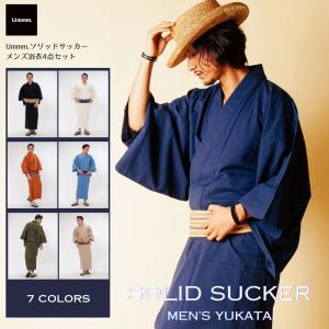 /男浴衣セット/涼しいサッカー生地/日本製高級生地/浴衣+帯+下駄+腰紐/シアサッカー・お仕立て上がりメンズ浴衣4点セット