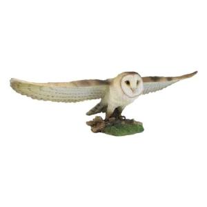 Ebros 大型 リアルな自然 野生動物 一般的な納屋のフクロウ 木の切り株の像 幅30.25インチ 本物そっくり 夜行形 フクロウ ガラス目 センターピースフィギュア 炉