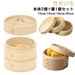 竹せいろ 蒸し器 2段 本体2個 蓋1個セット 天然木 蒸籠 せいろ蒸し 中華せいろ しゅうまい 点心 小籠包 肉まん 蒸し料理 健康料理 温野菜 茶