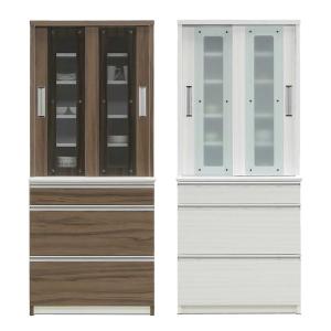 1日P13%〜 食器棚 キッチンボード ハイタイプ 幅80 引き出し 可動棚 北欧 モダン 完成品
