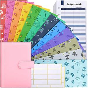 手帳型 現金封筒ファイルセット A6 家計管理 仕分けポーチ 現金仕分け 貯金 節約(ピンク)