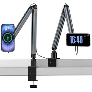 スマホ スタンド アームスタンド ワイヤレス充電器 寝ながら 15W急速充電 マグネット式 アルミ製 六つ可動関節 角度調整 広い可動域 折りた