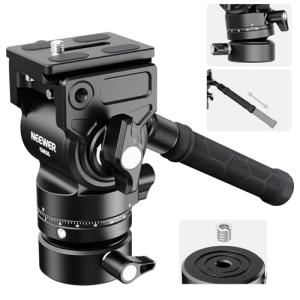 NEEWER 三脚流体雲台 +/-7°レベリングベースΦ48mm付き 金属製 コンパクト パンチルト Arca型QRプレート/伸縮ハンドル付き