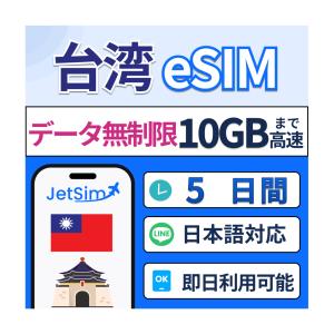 【台湾eSIM】5日間 高速データ 10GB 即日発行 簡単設定 テザリング対応 5G/4G-LTE
