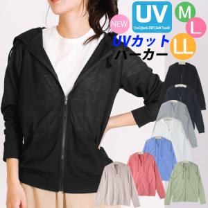 【送料無料】薄手 紫外線 UVカットパーカー ジップアップ ベーシックパーカー 二の腕ゆったり レディース 紫外線カット Lサイズ LLサイズ 綿混 4958