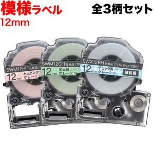 テプラテープ 12mm 互換 テープ テプラプロ テプラ PRO 強粘着 模様 ラベル 全3柄セット キングジム 用