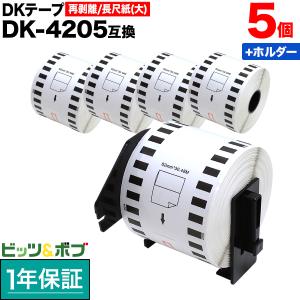 本日ポイント10倍 ブラザー用 ピータッチ DKテープ (感熱紙) DK-4205 互換品 再剥離 長尺紙テープ(大) 白 62mm×30.48m 5個セット+ホルダー1個